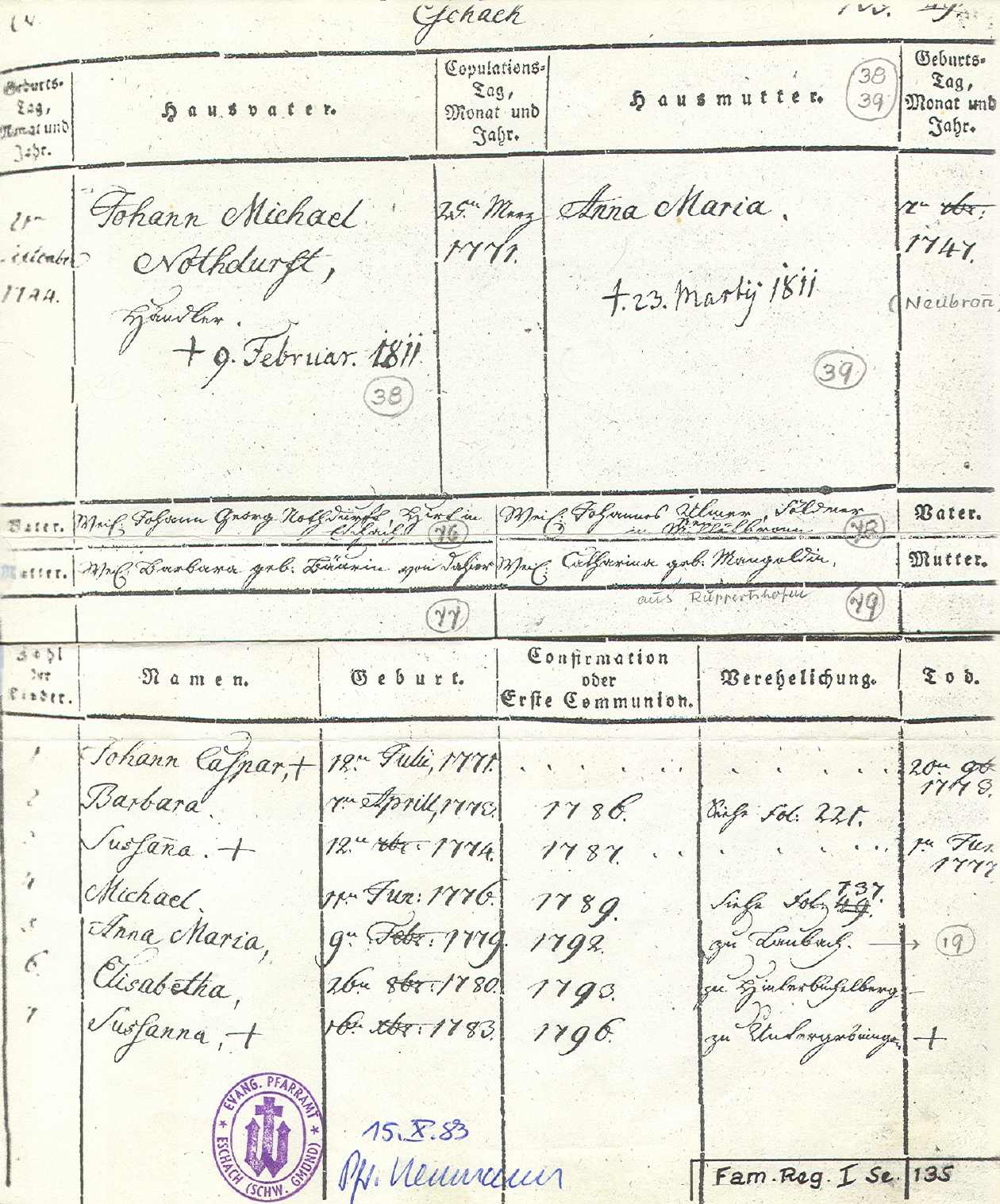 198 Johann Michael Nothdurft * 21.9.1744 73569 Eschach + 9.2.1811 73569 Eschach