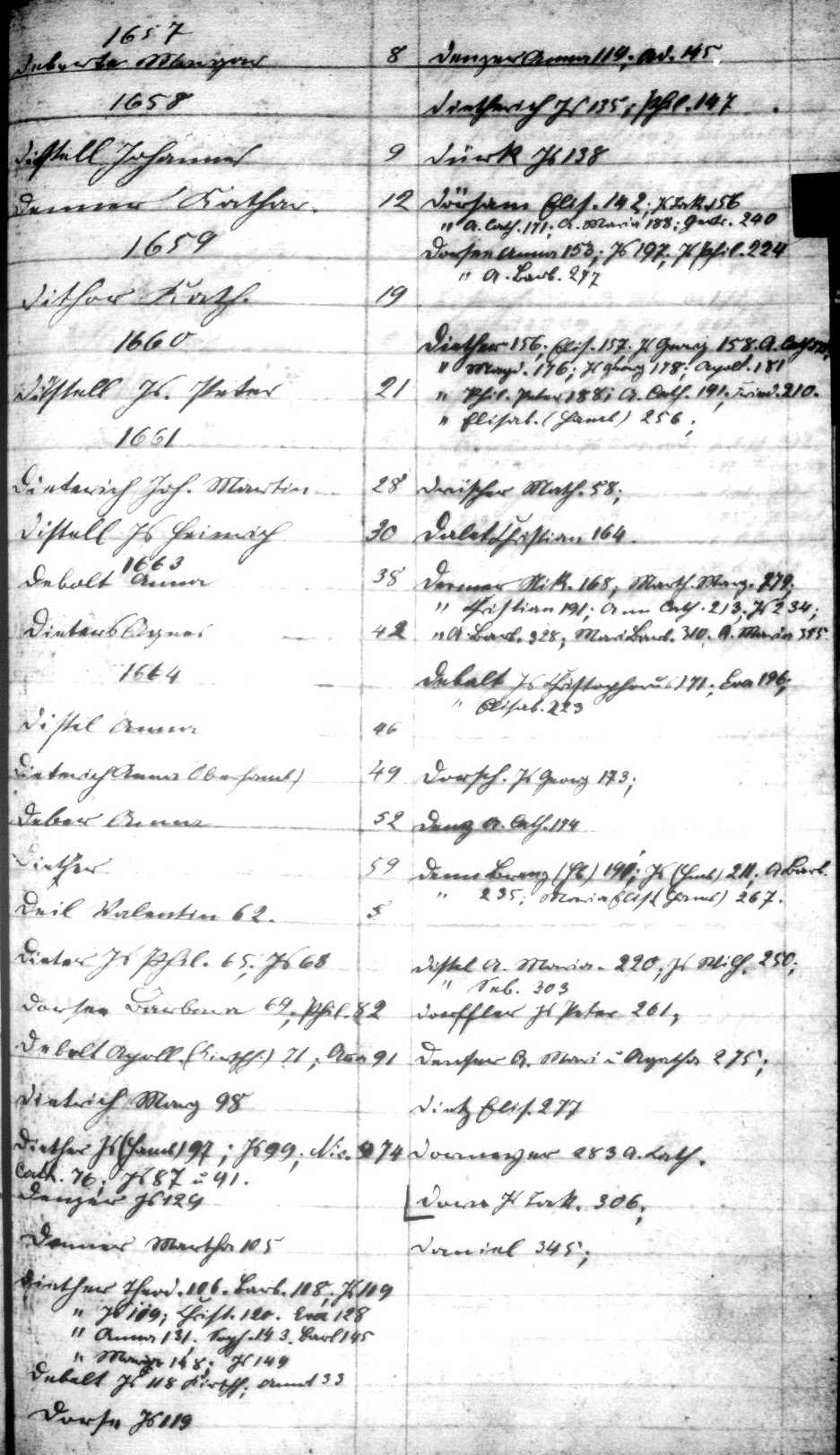 | Bernhardt | 155 | ¥ 9.5.1640 | rk | Schöffe in FÜ Margaretha, verw. Kebel |